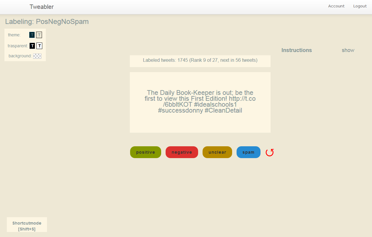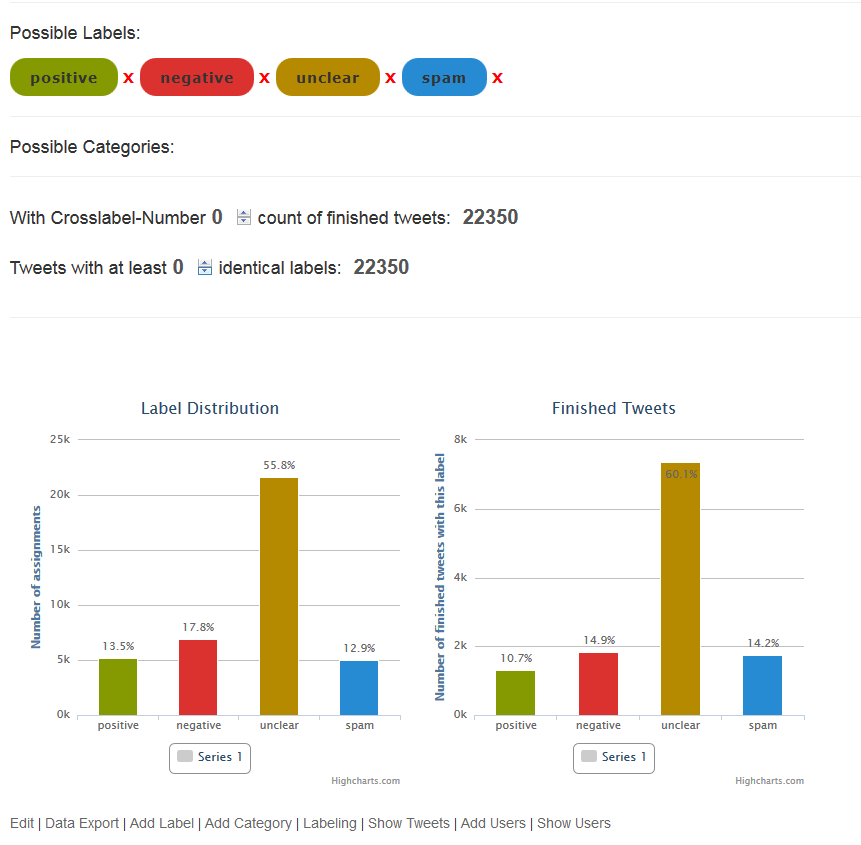Es gibt viele Interessenten an einer Analyse der Stimmung in sozialen Netzwerken, in welchen zur heutigen Zeit viele Menschen öffentlich ihre Meinung äußern. Dies ist mit einer Stimmungsanalyse von Tweets automatisiert möglich, indem diese selbstständig in Stimmungskategorien, sogenannte Labels, eingeordnet werden. Je genauer die Bewertungen des automatisierten Labelers mit denen menschlicher Labeler übereinstimmen, desto höher ist die Qualität des Programms. Um dies zu erreichen, werden Testdatensets benötigt, welche aus Tweets bestehen, die bereits von Menschen mit einem der möglichen Klassenlabels bewertet wurden.