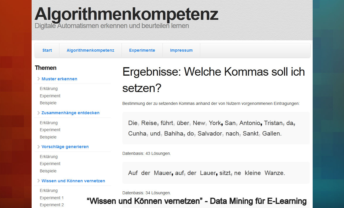 | Stichworte | E-Learning, Datenanalyse, Forschungstransfer |